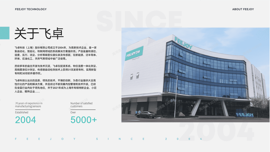 1. 专注仪器仪表,深耕测量领域自成立以来,飞卓科技始终聚焦高精度工业仪器仪表及智能传感系统领域,专注为能源、化工、智能制造等行业提供核心测量解决方案。我们深刻理解工业场景中对稳定性、精度与长期可靠性的严苛要求,致力于在复杂工况下实现测量技术的极致性能,成为客户最值得信赖的测量专家。